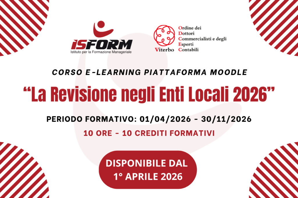 ISFORM è un ente accreditato al Consiglio Nazionale dei Dottori Commercialisti e degli Esperti contabili. Propone varie attività destinate ai dottori commercialisti: